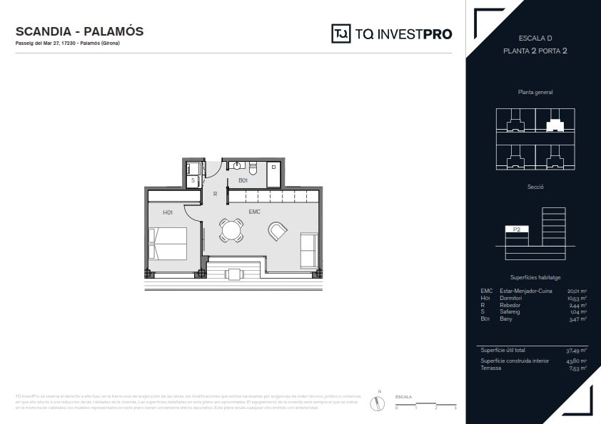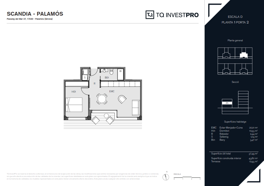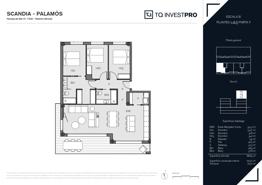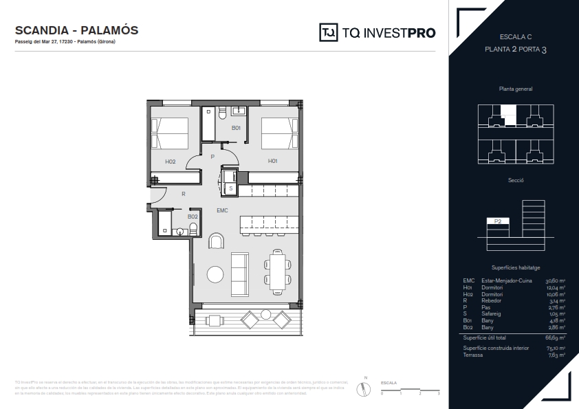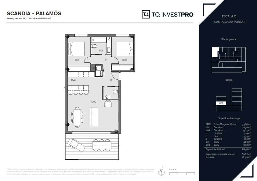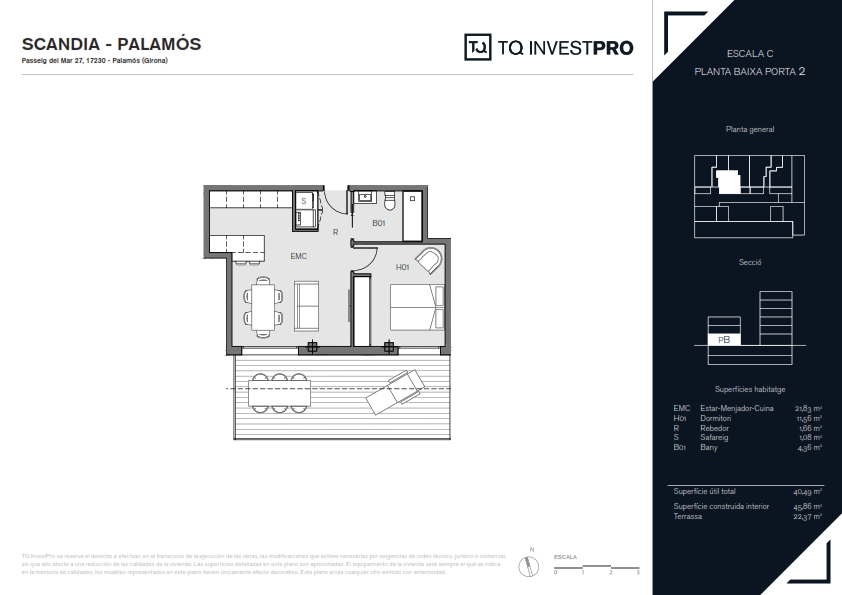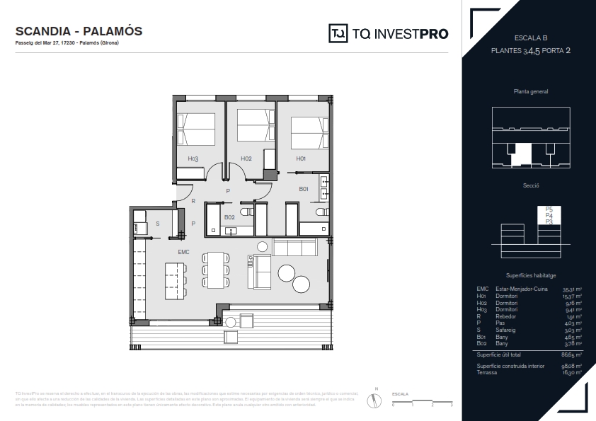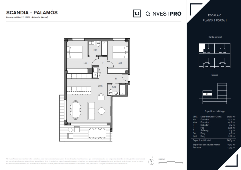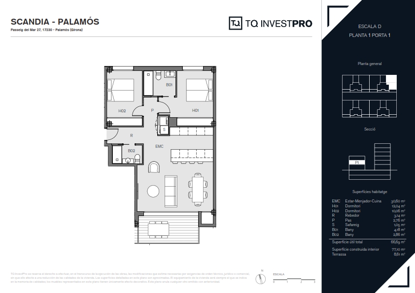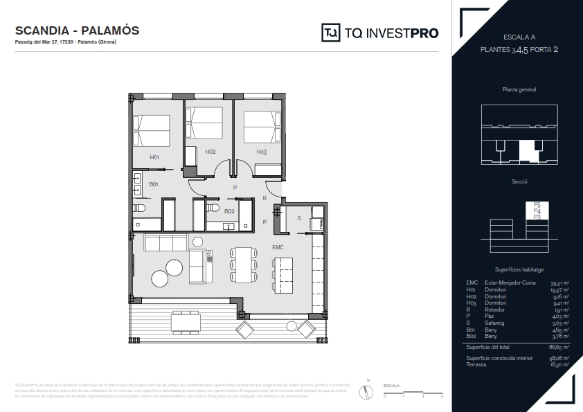 En la PRIMERA LINEA DE MAR en el Passeig del Mar Palamós en el centro de la COSTA BRAVA, se inicia el Edificio de la Promoción Residencial de Lujo SCANDIA (con magníficas vistas al mar) El edificio se compone: De un Bloque Frontal al mar de planta baja comercial y cinco plantas alzadas de lujosas viviendas de uno, dos y tres dormitorios. Con vistas al puerto y a la preciosa Badía de Palamós Y un Bloque Lateral de planta baja y dos plantas alzadas de viviendas de uno y dos dormitorios, con entrada directa desde el PASSEIG DEL MAR También dispone de dos plantas sótanos destinadas a párquines i trasteros. Situado a pie del PASSEIG DEL MAR y de la PLATJA GRAN DE PALAMOS (ambos en fase de renovación con un proyecto de reforma de 8’8M de euros, finaliza finales 2.027.